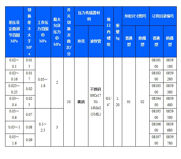 520/7DD差壓開關(guān)采用波紋管式的傳感器,可用于空氣、氣體、水蒸汽等中性氣體和水、制冷劑、油等液體介質(zhì)。520/7DD差壓開關(guān)的設(shè)定值可調(diào),調(diào)節(jié)范圍0.02~1.6MPa,工作壓力范圍0.05~2.5MPa。