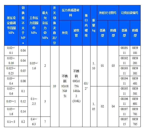 530/7DD差壓開關(guān)采用波紋管式的傳感器,可用于腐蝕性的氣體和液體介質(zhì)。530/7DD差壓開關(guān)的設(shè)定值可調(diào),調(diào)節(jié)范圍0.02~3MPa,其工作壓力范圍0.05~6.3MPa。