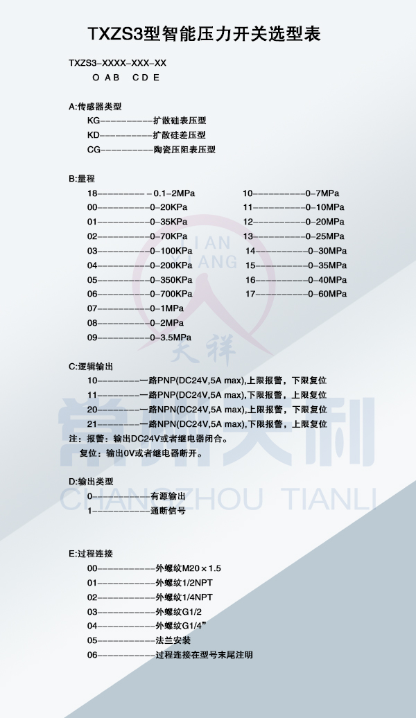 TXZS3智能壓力開關基本參數