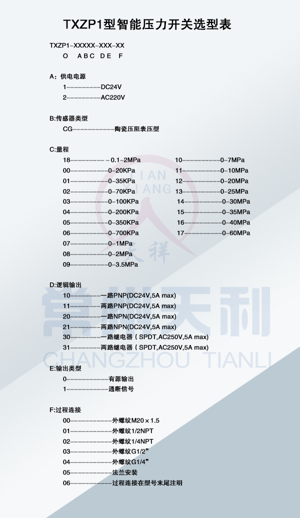 TXZP1智能壓力開關基本參數(shù)