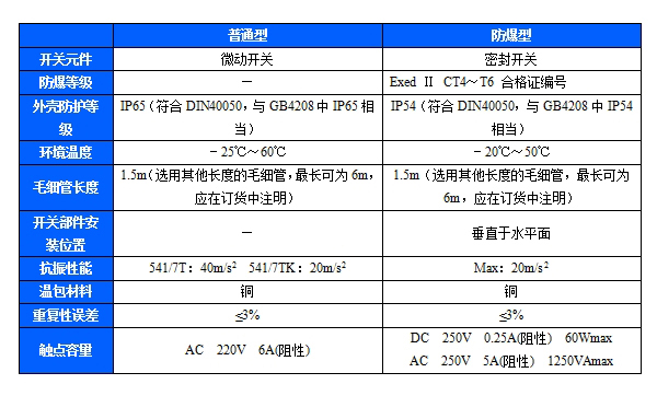 541/7T防爆溫度開關(guān)采用帶毛細管溫包式傳感器,可用于流動的中性氣體和液體介質(zhì),如果介質(zhì)為腐蝕性,安裝時可選用不銹鋼溫包保護套套在銅質(zhì)溫包外(見附件)。541/7T防爆溫度開關(guān)的設(shè)定值可調(diào),調(diào)節(jié)范圍-30~280℃。